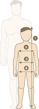 Bekijk alsjeblieft de afbeelding van het kind naast de maattabel hierboven en volg deze eenvoudige stappen: