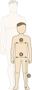 | Confectiemaat | Borstomvang (1) | Tailleomtrek (2) | Beenlengte (3) |